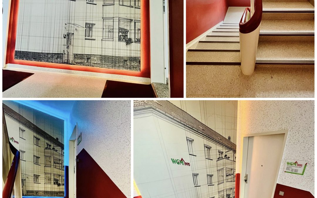 Das Treppenhaus in unserer Geschäftsstelle in der Gr. Diesdorfer Str. 193 hat ein echtes Update bekommen – und das kann sich sehen lassen!